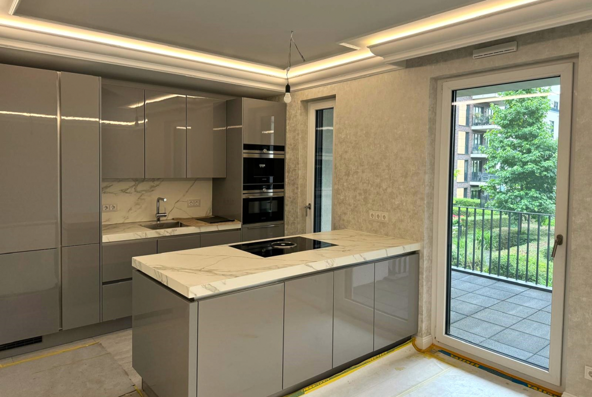 - Wohnfläche: 97 m² - Zimmer: 3 (inkl. Kinderzimmer/Gästezimmer/Büro) - Baujahr: 2018 - Ausstattung: Luxuriöse Küche, exklusive Schlafzimmermöbel, Video-Sprechanlage, Alarmanlage, Fußbodenheizung, hochwertiger Parkettboden, Aufzug, Fahrradkeller, Waschraum - Preis für Ausstattung: 50.000 € - Lage: Ruhige Nachbarschaft, schöner Park in der Nähe - Verfügbarkeit: Sofort frei